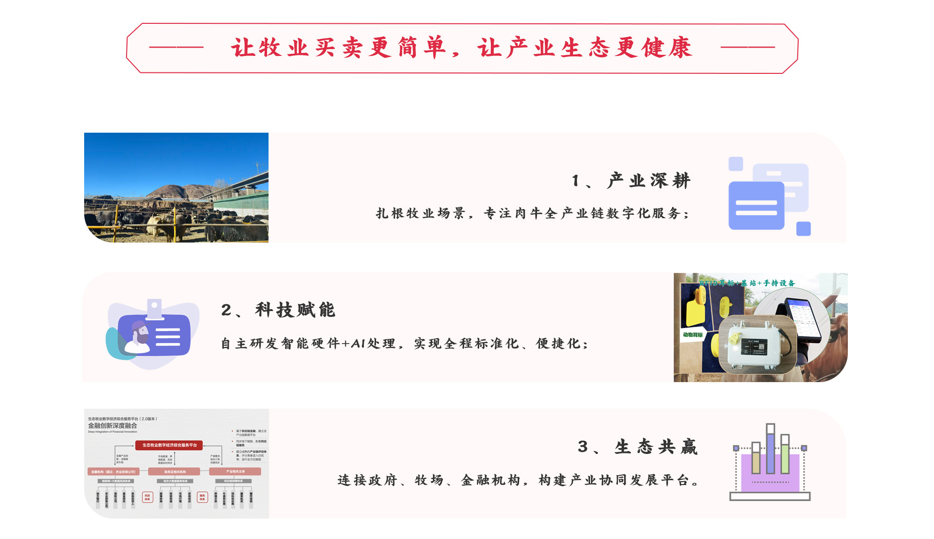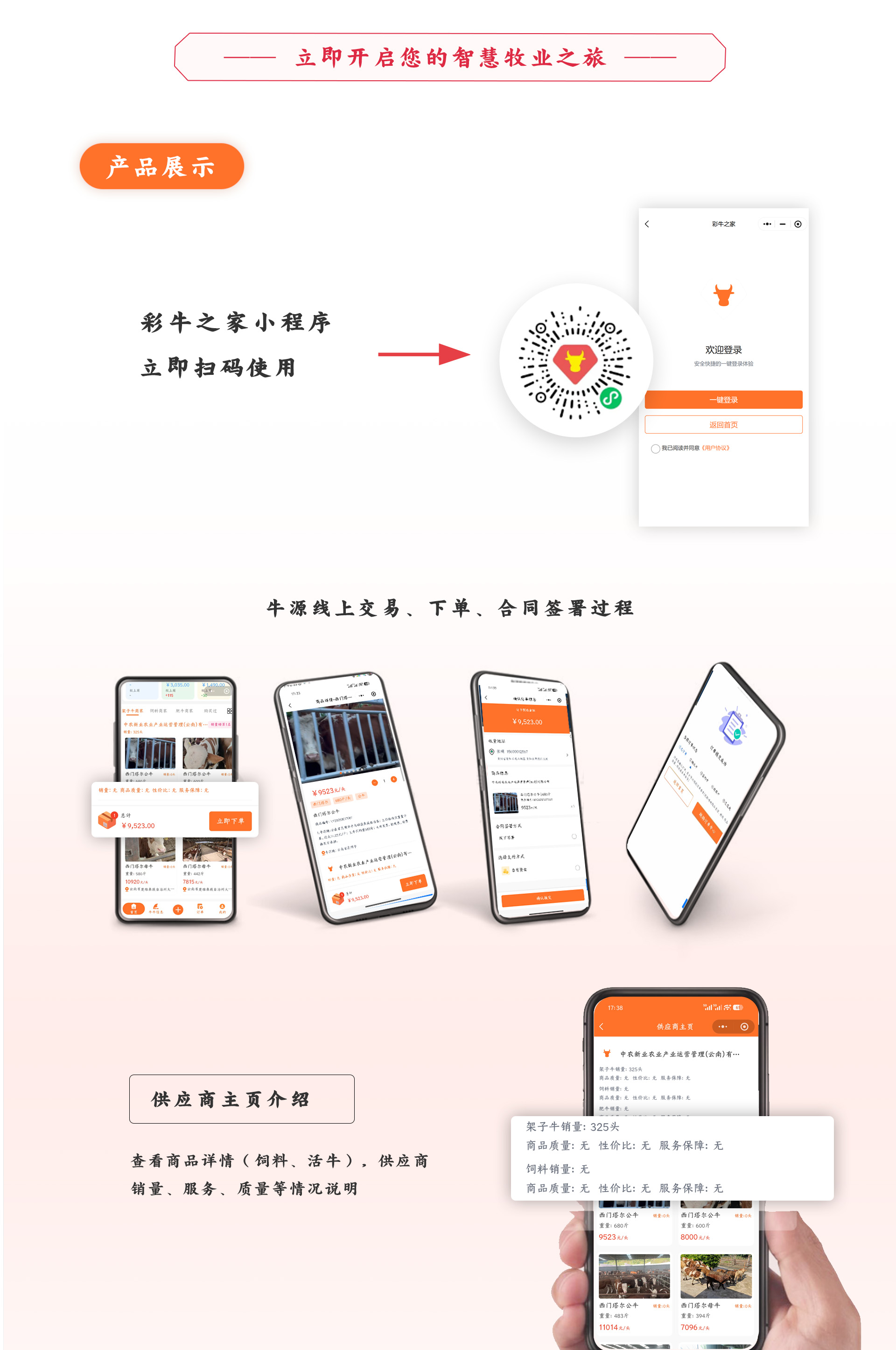 彩牛之家是专业的肉牛产业数字化服务平台,通过线上交易、供应链金融与产业数据服务,为养殖户提供从养殖到销售的全链路解决方案,助力产业提质增效。